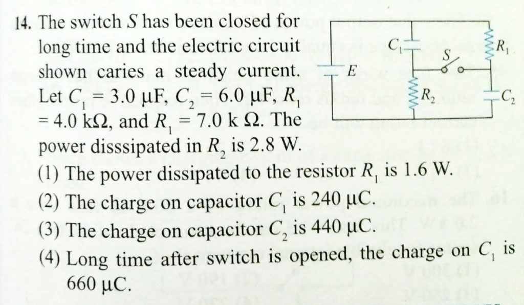 THe switch S has been closed for long time and the electric circuit shown caries a steady current . Let C1 = 3 muF, C2 = 6 muF , R1 = 4 kohm, and R1 = 7 k ohm. The poer dissipated in R2 is 2.8 W. and R1 = 7 k ohm. The poer dissipated in R2 is 2.8 W. C2 = 6 muF R1 = 4 kohm THe switch S has been closed for long time and the electric circuit shown caries a steady current . Let C1 = 3 muF November 18, 2020 Category: Uncategorised (JEE Advanced Physics by BM Sharma + GMP Solutions) , Facebook Messenger WhatsApp Share this:TwitterFacebook Related