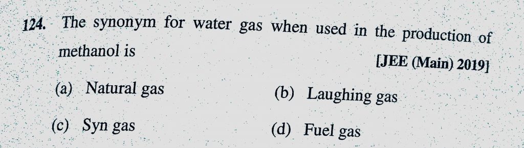 The synonym for water gas when used in the production of methanol is (a) Natural gas (b) Laughing gas (c) Syn gas (d) Fuel gas The synonym for water gas when used in the production of methanol is (a) Natural gas (b) Laughing gas (c) Syn gas (d) Fuel gas December 16, 2020 Category: Uncategorised (JEE Advanced Physics by BM Sharma + GMP Solutions) , Facebook Messenger WhatsApp Share this:TwitterFacebook Related