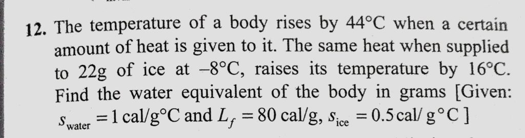 The temperature of a body rises by 44 C when a certain amount of heat is given to it. The same heat when supplied to 22g of ice at -8C, raises its temperature by 16 C. Find the water equivalent raises its temperature by 16 C. Find the water equivalent The temperature of a body rises by 44 C when a certain amount of heat is given to it. The same heat when supplied to 22g of ice at -8C October 24, 2020 Category: Uncategorised (JEE Advanced Physics by BM Sharma + GMP Solutions) , Facebook Messenger WhatsApp Share this:TwitterFacebook Related