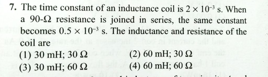 The time constant of an inductance coil is 2 x 10^-3 s. when a 90 ohm resistance is joined in series, the same constant becomes 0.5 x 10^-3 s. The inductance and resistance of the coil are the same constant becomes 0.5 x 10^-3 s. The inductance and resistance of the coil are The time constant of an inductance coil is 2 x 10^-3 s. when a 90 ohm resistance is joined in series October 22, 2020 Category: Uncategorised (JEE Advanced Physics by BM Sharma + GMP Solutions) , Facebook Messenger WhatsApp Share this:TwitterFacebook Related