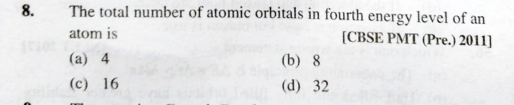 The total number of atomic orbitals in fourth energy level of an atom is (a) 4 (b) 8 (c) 16 (d) 32 The total number of atomic orbitals in fourth energy level of an atom is (a) 4 (b) 8 (c) 16 (d) 32The total number of atomic orbitals in fourth energy level of an atom is (a) 4 (b) 8 (c) 16 (d) 32 November 26, 2020 Category: Uncategorised (JEE Advanced Physics by BM Sharma + GMP Solutions) , Facebook Messenger WhatsApp Share this:TwitterFacebook Related
