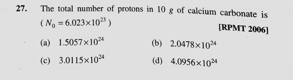 The total number of protons in 10 g of calcium carbonate is (N0 = 6.023 x 10^23 ) The total number of protons in 10 g of calcium carbonate is (N0 = 6.023 x 10^23 ) November 22, 2020 Category: Uncategorised (JEE Advanced Physics by BM Sharma + GMP Solutions) , Facebook Messenger WhatsApp Share this:TwitterFacebook Related