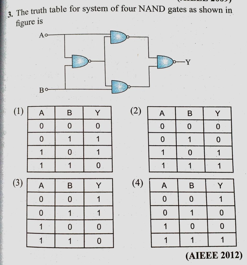 The truth table for system of four NAND gates as shown in figure is The truth table for system of four NAND gates as shown in figure is October 22, 2020 Category: Uncategorised (JEE Advanced Physics by BM Sharma + GMP Solutions) , Facebook Messenger WhatsApp Share this:TwitterFacebook Related