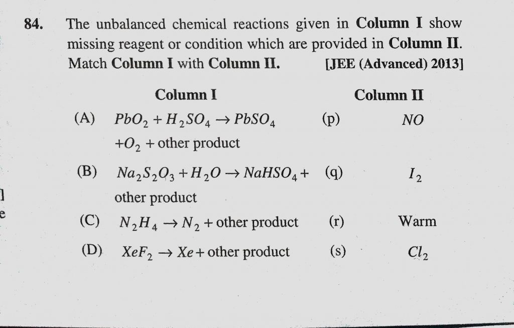 The unbalanced chemical reactions given in Column 1 show missing reagent or condition which are provided in Column 2. Match Column 1 with Column 2 The unbalanced chemical reactions given in Column 1 show missing reagent or condition which are provided in Column 2. Match Column 1 with Column 2 November 29, 2020 Category: Uncategorised (JEE Advanced Physics by BM Sharma + GMP Solutions) , Facebook Messenger WhatsApp Share this:TwitterFacebook Related