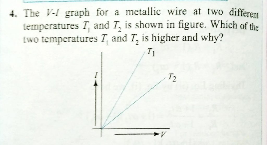 The V- I graph for a metallic wire at two different temperatures T1 and T2 is shown in figure. Which of the two temperatures T1 and T2 is higher and Why ? The V- I graph for a metallic wire at two different temperatures T1 and T2 is shown in figure. Which of the two temperatures T1 and T2 is higher and Why ? November 10, 2020 Category: Uncategorised (JEE Advanced Physics by BM Sharma + GMP Solutions) , Facebook Messenger WhatsApp Share this:TwitterFacebook Related