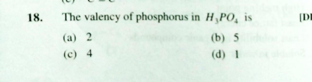 The valency of phosphorus in H3PO4 is (a) 2 (b) 5 (c) 4 (d) 1 The valency of phosphorus in H3PO4 is (a) 2 (b) 5 (c) 4 (d) 1 December 1, 2020 Category: Uncategorised (JEE Advanced Physics by BM Sharma + GMP Solutions) , Facebook Messenger WhatsApp Share this:TwitterFacebook Related