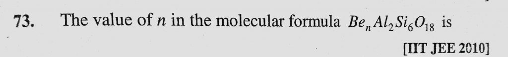 The value of n in the molecular formula BenAl2Si6O18 is The value of n in the molecular formula BenAl2Si6O18 is November 29, 2020 Category: Uncategorised (JEE Advanced Physics by BM Sharma + GMP Solutions) , Facebook Messenger WhatsApp Share this:TwitterFacebook Related