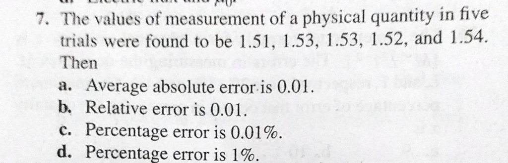 The values of measurement of a physical quantity in five trials were found to be 1.51, 1.53. 1.53, 1.52, and 1.54. Then 1.52 1.53. 1.53 and 1.54. Then The values of measurement of a physical quantity in five trials were found to be 1.51 September 15, 2020 Category: Uncategorised (JEE Advanced Physics by BM Sharma + GMP Solutions) , Facebook Messenger WhatsApp Share this:TwitterFacebook Related