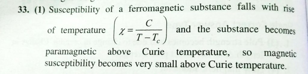 The variation of magnetic susceptibility ( x ) with absolute temperature T for a ferromagnetic material is The variation of magnetic susceptibility ( x ) with absolute temperature T for a ferromagnetic material is October 18, 2020 Category: Uncategorised (JEE Advanced Physics by BM Sharma + GMP Solutions) , Facebook Messenger WhatsApp Share this:TwitterFacebook Related