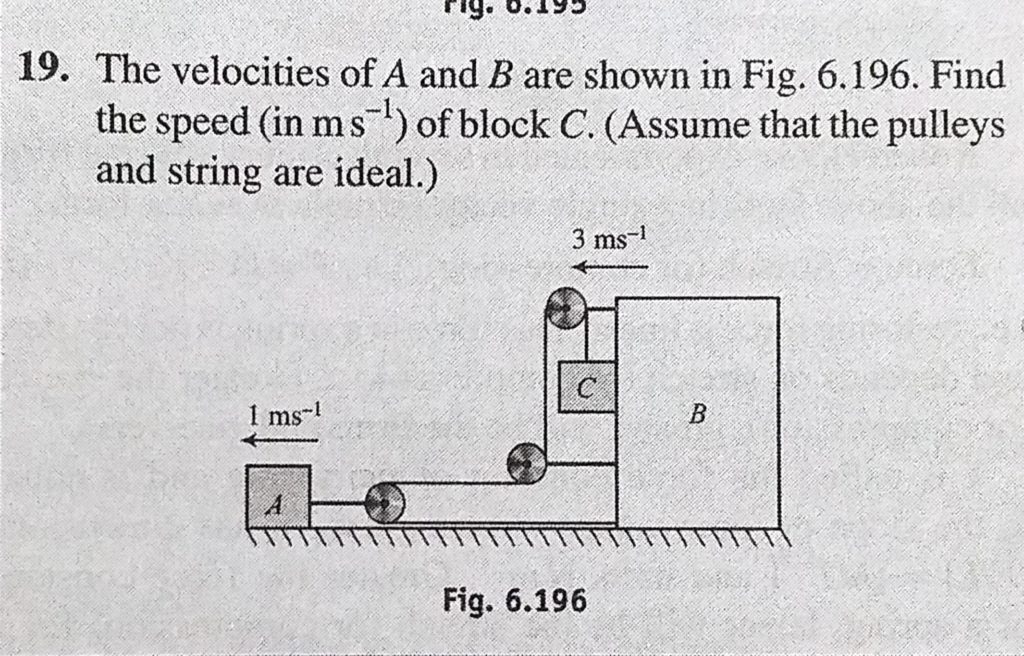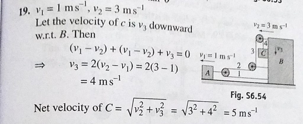 The velocities of A and B are shown in Fig. 6.196. Find the speed (in m/s) of block C. (Assume that the pulleys and string are ideal.) The velocities of A and B are shown in Fig. 6.196. Find the speed (in m/s) of block C. (Assume that the pulleys and string are ideal.) September 28, 2020 Category: Uncategorised (JEE Advanced Physics by BM Sharma + GMP Solutions) , Facebook Messenger WhatsApp Share this:TwitterFacebook Related
