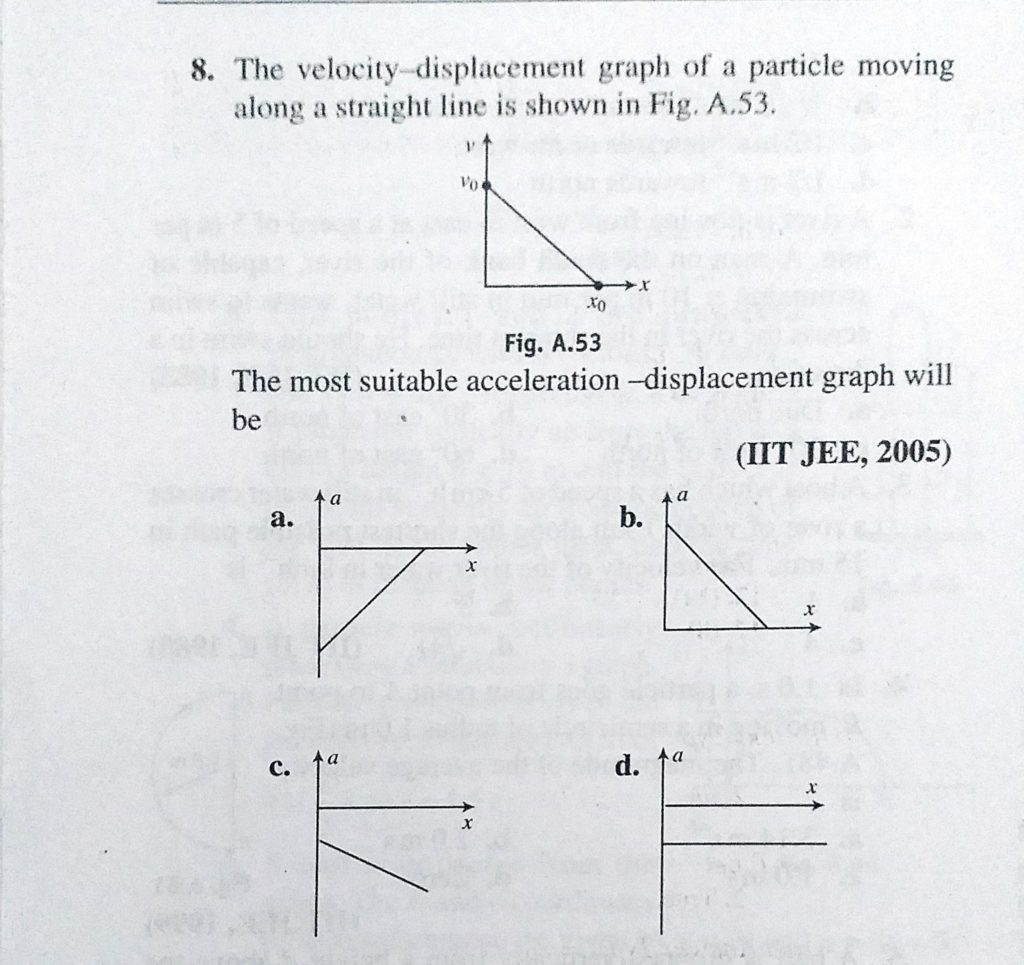 The velocity- displacement graph of a particle moving along a straight line is shown in Fig.A.53 The most suitable acceleration- displacement graph will be The velocity- displacement graph of a particle moving along a straight line is shown in Fig.A.53 The most suitable acceleration- displacement graph will be September 25, 2020 Category: Uncategorised (JEE Advanced Physics by BM Sharma + GMP Solutions) , Facebook Messenger WhatsApp Share this:TwitterFacebook Related