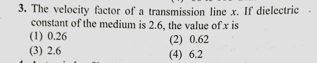 The velocity factor of a transmission line x. If dielectric constant of the medium is 2.6, the value of x is the value of x is The velocity factor of a transmission line x. If dielectric constant of the medium is 2.6 October 22, 2020 Category: Uncategorised (JEE Advanced Physics by BM Sharma + GMP Solutions) , Facebook Messenger WhatsApp Share this:TwitterFacebook Related