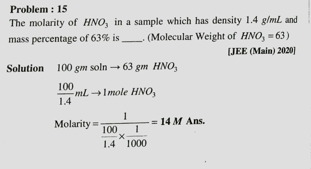 The molarity of HNO3 in a sample which has density 1.4 g/mL and mass percentage of 63% is The molarity of HNO3 in a sample which has density 1.4 g/mL and mass percentage of 63% is November 25, 2020 Category: Uncategorised (JEE Advanced Physics by BM Sharma + GMP Solutions) , Facebook Messenger WhatsApp Share this:TwitterFacebook Related
