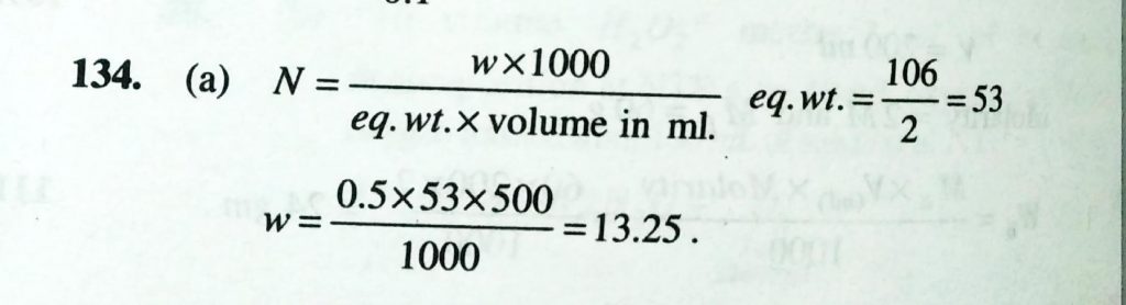 The weight of sodium carbonate required to prepare 500 ml of a semi- normal solution is (a) 13.25 g (b) 26.5 g (c) 53 g (d) 6.125 g The weight of sodium carbonate required to prepare 500 ml of a semi- normal solution is (a) 13.25 g (b) 26.5 g (c) 53 g (d) 6.125 g December 12, 2020 Category: Uncategorised (JEE Advanced Physics by BM Sharma + GMP Solutions) , Facebook Messenger WhatsApp Share this:TwitterFacebook Related