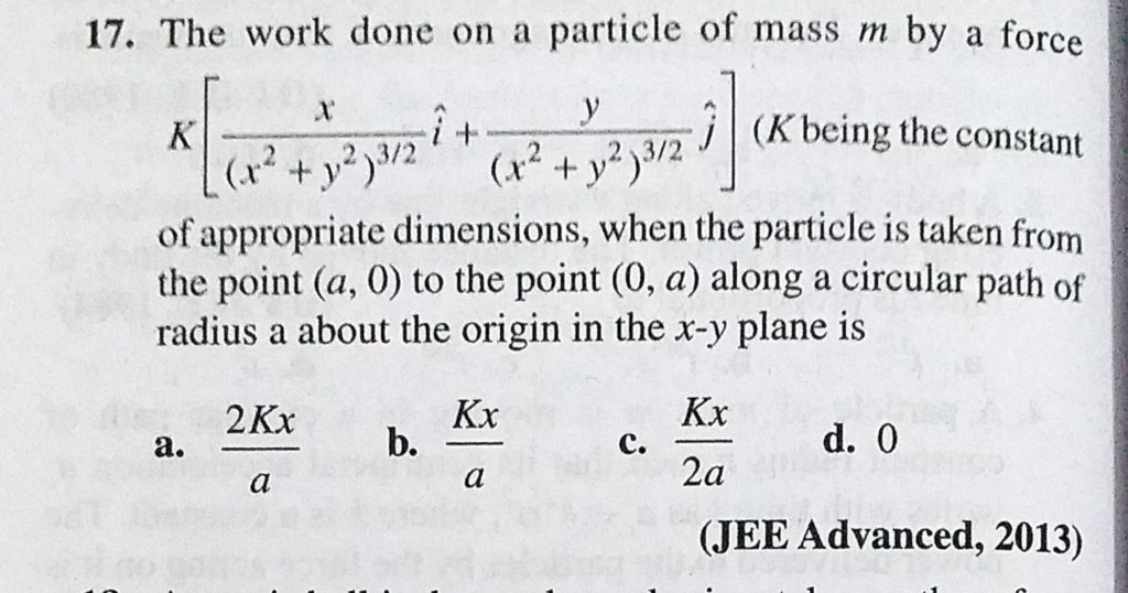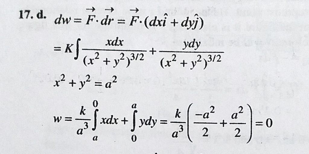 The work done on a particle of mass m by a force k ( x / (x^2 + y^2)^3/2 i + y / ( x^2 + y ^2 )^3/2 j ) ( K being the constant of appropriate dimensions, when the particle is taken from The work done on a particle of mass m by a force k ( x / (x^2 + y^2)^3/2 i + y / ( x^2 + y ^2 )^3/2 j ) ( K being the constant of appropriate dimensions when the particle is taken from October 5, 2020 Category: Uncategorised (JEE Advanced Physics by BM Sharma + GMP Solutions) , Facebook Messenger WhatsApp Share this:TwitterFacebook Related