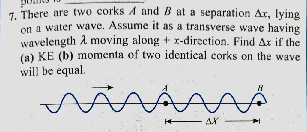 There are two corks A and B at a separation delta x, lying on a water wave. Assume it as a transverse wave having wavelength lemda moving along +x direction. Find delta x if the lying on a water wave. Assume it as a transverse wave having wavelength lemda moving along +x direction. Find delta x if the There are two corks A and B at a separation delta x November 1, 2020 Category: Uncategorised (JEE Advanced Physics by BM Sharma + GMP Solutions) , Facebook Messenger WhatsApp Share this:TwitterFacebook Related