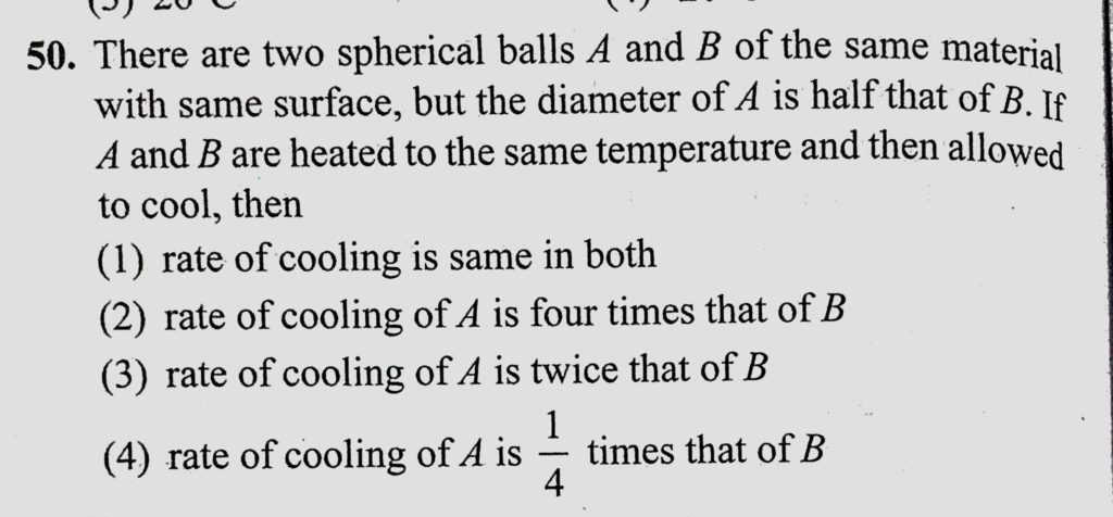 There are two spherical balls A and B of the same material with same surface, but the diameter of A is half that of B. If A and B are heated to the same temperature and then but the diameter of A is half that of B. If A and B are heated to the same temperature and then There are two spherical balls A and B of the same material with same surface October 25, 2020 Category: Uncategorised (JEE Advanced Physics by BM Sharma + GMP Solutions) , Facebook Messenger WhatsApp Share this:TwitterFacebook Related