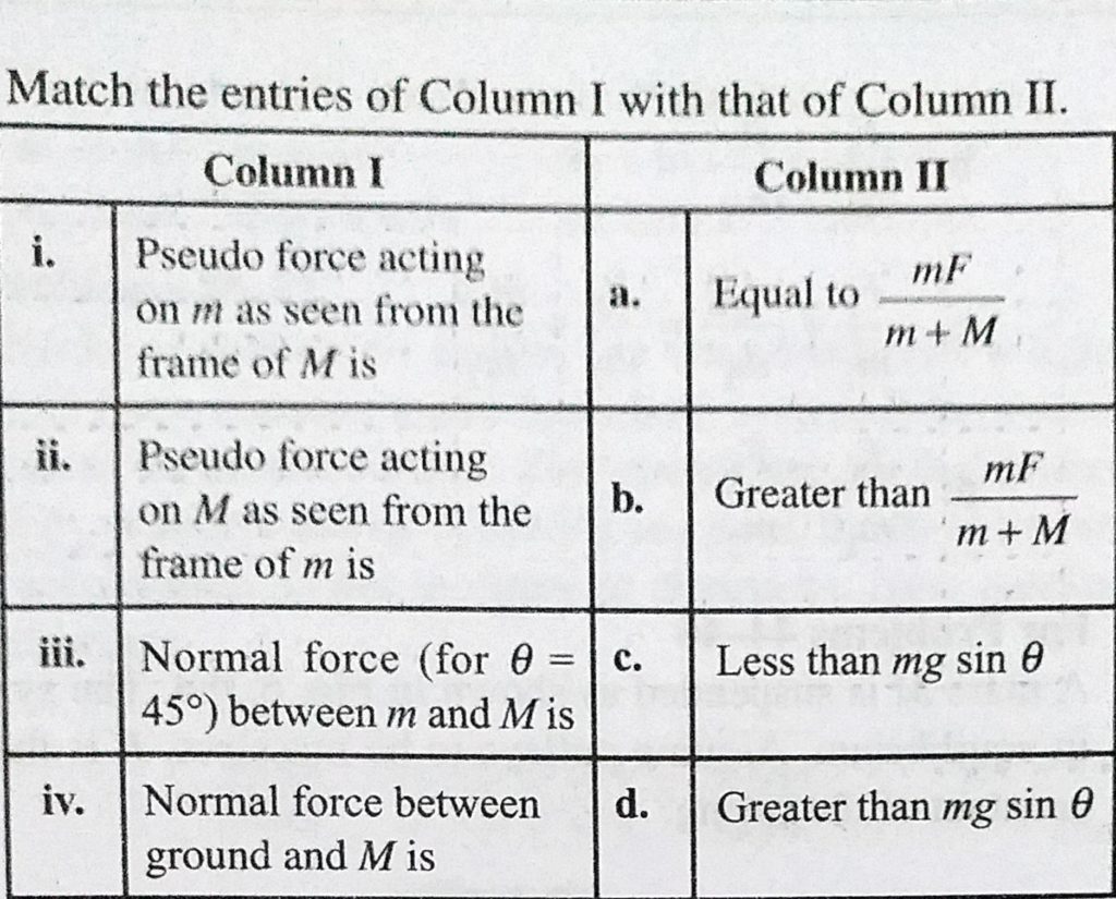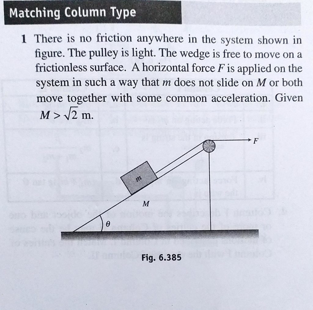 There is no friction anywhere in the system shown in figure. The pulley is light. The wedge is free to move on a frictionless surface. A horizontal force F is applied on the system in such a way There is no friction anywhere in the system shown in figure. The pulley is light. The wedge is free to move on a frictionless surface. A horizontal force F is applied on the system in such a way September 30, 2020 Category: Uncategorised (JEE Advanced Physics by BM Sharma + GMP Solutions) , Facebook Messenger WhatsApp Share this:TwitterFacebook Related