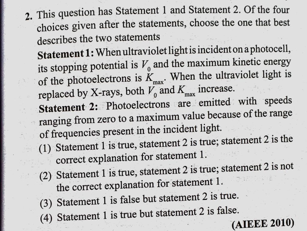 This question has Statement 1 and Statement 2. Of the four choices given after the statements, choose the one that best describes the two statements. Statement 1: when ultraviolet light is incident on a photocell, its stopping choose the one that best describes the two statements. Statement 1: when ultraviolet light is incident on a photocell its stopping This question has Statement 1 and Statement 2. Of the four choices given after the statements October 14, 2020 Category: Uncategorised (JEE Advanced Physics by BM Sharma + GMP Solutions) , Facebook Messenger WhatsApp Share this:TwitterFacebook Related