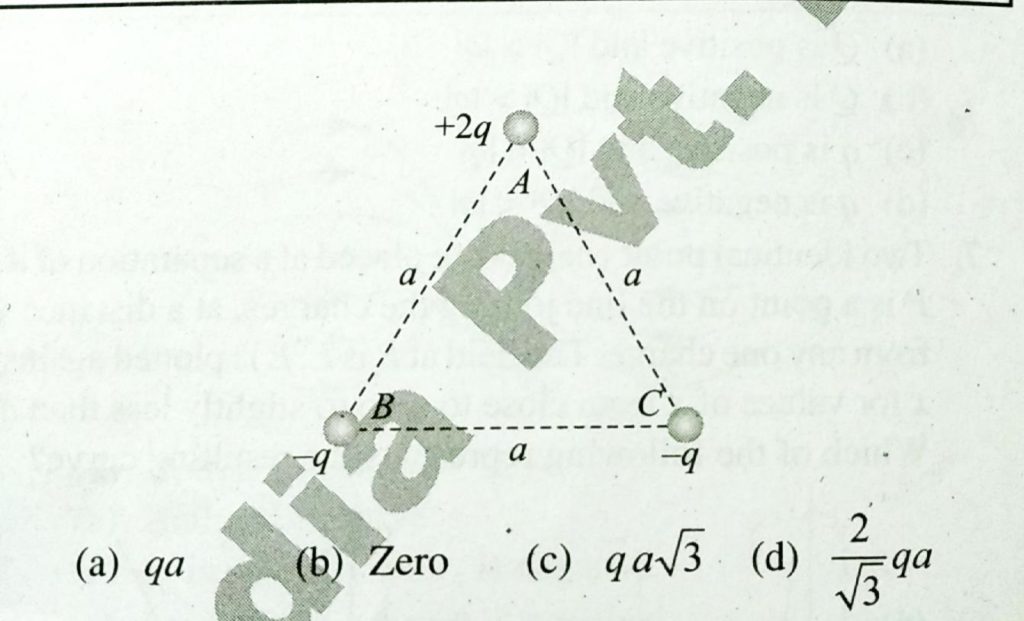 Three charges of +2q, -q and -q are placed at the corners of A, B and C of an equilateral triangle of side a as shown in the adjoining figure. Then the dipole moment of this combination is -q and -q are placed at the corners of A B and C of an equilateral triangle of side a as shown in the adjoining figure. Then the dipole moment of this combination is Three charges of +2q September 17, 2020 Category: Uncategorised (JEE Advanced Physics by BM Sharma + GMP Solutions) , Facebook Messenger WhatsApp Share this:TwitterFacebook Related