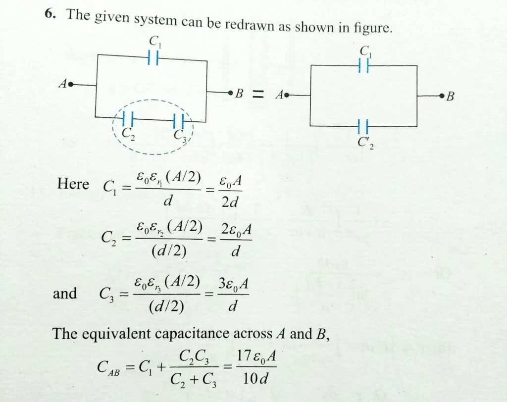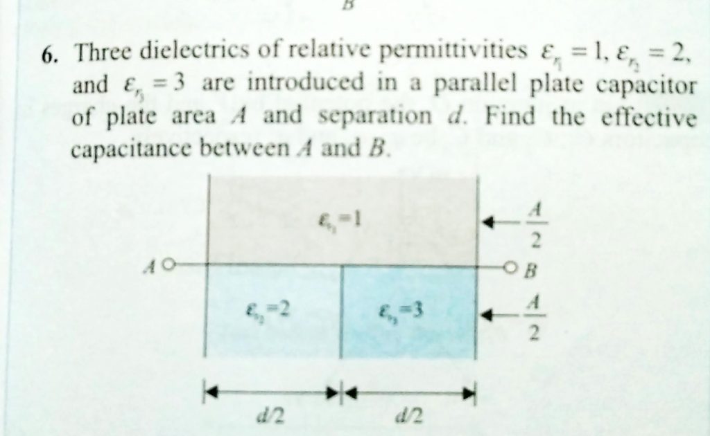 Three dielectrics of relative permittivities Er = 1 , Er = 2. and Er = 3 are introduced in a parallel plate capacitor of plate area A and seperation d. Find the effective capacitance between A and B . Er = 2. and Er = 3 are introduced in a parallel plate capacitor of plate area A and seperation d. Find the effective capacitance between A and B . Three dielectrics of relative permittivities Er = 1 November 7, 2020 Category: Uncategorised (JEE Advanced Physics by BM Sharma + GMP Solutions) , Facebook Messenger WhatsApp Share this:TwitterFacebook Related