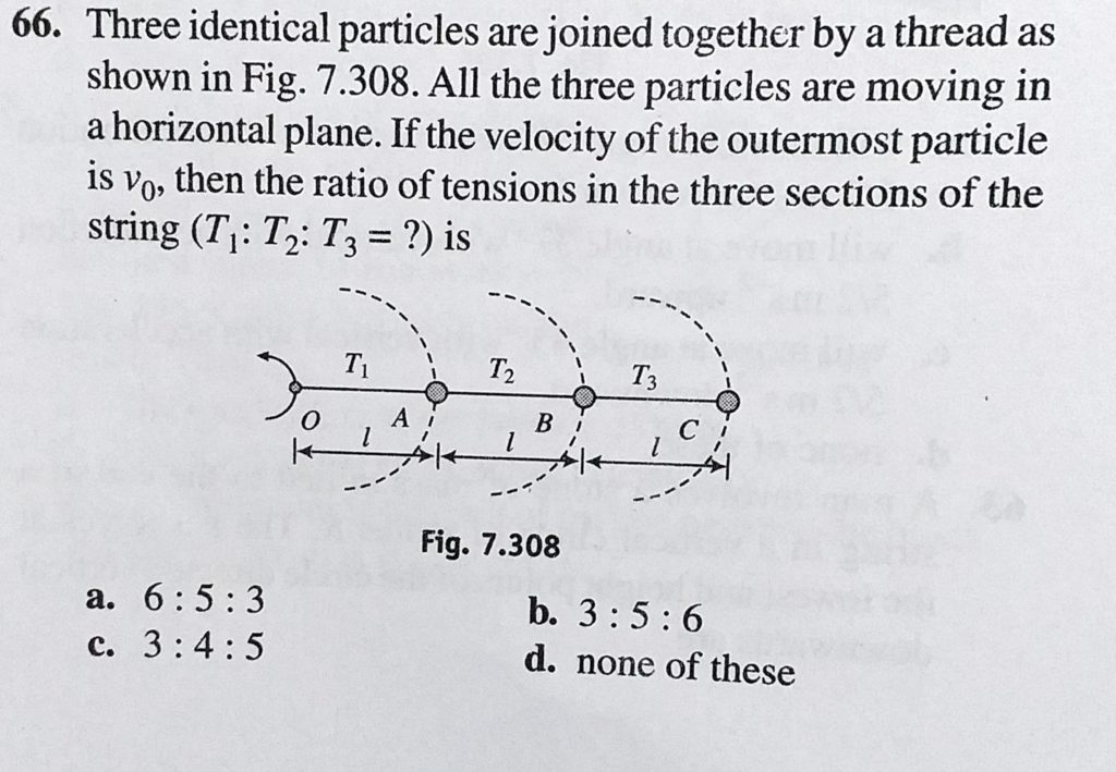 Three identical particles are joined together by a thread as shown in Fig. 7.308. All the three particles are moving in a horizontal plane. If the velocity of the outermost particle is v0, then the ratio of tensions then the ratio of tensions Three identical particles are joined together by a thread as shown in Fig. 7.308. All the three particles are moving in a horizontal plane. If the velocity of the outermost particle is v0 October 1, 2020 Category: Uncategorised (JEE Advanced Physics by BM Sharma + GMP Solutions) , Facebook Messenger WhatsApp Share this:TwitterFacebook Related