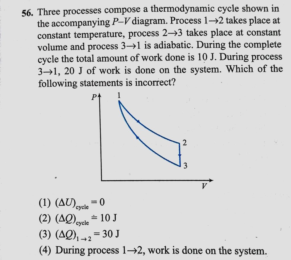 Three processes compose a thermodynamic cycle shown in the accompanying P-V diagram. Process 1 to 2 takes place at constant temperature process 2 to 3 takes place at constant Three processes compose a themodynamic cycle shown in the accompanying P-V diagram. Process 1 to 2 takes place at constant temperature process 2 to 3 takes place at constant October 29, 2020 Category: Uncategorised (JEE Advanced Physics by BM Sharma + GMP Solutions) , Facebook Messenger WhatsApp Share this:TwitterFacebook Related