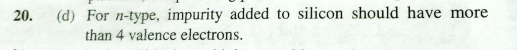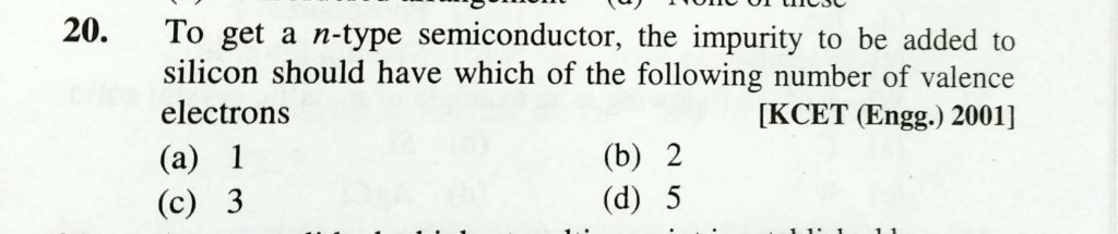 To get a n- type semiconductor , the impuriity to be added to silicon should have which of the following number of valence electrons the impuriity to be added to silicon should have which of the following number of valence electrons To get a n - type semiconductor February 8, 2021 Category: Uncategorised (JEE Advanced Physics by BM Sharma + GMP Solutions) , Facebook Messenger WhatsApp Share this:TwitterFacebook Related