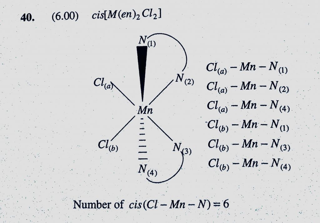 Total number of cis N-Mn-Cl bond angles (that is, Mn-N and Mn-Cl bonds in cis positions) present in a molecule of cis-(Mn(en)2Cl2) complex is…………………….. Mn-N and Mn-Cl bonds in cis positions) present in a molecule of cis-(Mn(en)2Cl2) complex is.......................... Total number of cis N-Mn-Cl bond angles (that is December 6, 2020 Category: Uncategorised (JEE Advanced Physics by BM Sharma + GMP Solutions) , Facebook Messenger WhatsApp Share this:TwitterFacebook Related
