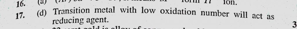Transition metal with low oxidation number will act as (a) A base (b) An acid (c) An oxidizing agent (d) None of these Transition metal with low oxidation number will act as (a) A base (b) An acid (c) An oxidizing agent (d) None of these December 2, 2020 Category: Uncategorised (JEE Advanced Physics by BM Sharma + GMP Solutions) , Facebook Messenger WhatsApp Share this:TwitterFacebook Related