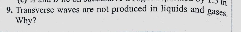 Transverse waves are not produced in liquids and gases. Why ? Transverse waves are not produced in liquids and gases. Why ? November 1, 2020 Category: Uncategorised (JEE Advanced Physics by BM Sharma + GMP Solutions) , Facebook Messenger WhatsApp Share this:TwitterFacebook Related
