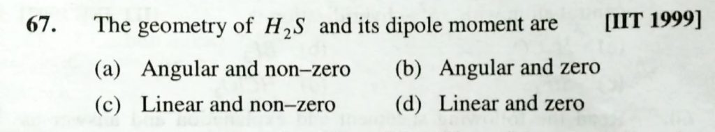 tThe geometry of H2S and its dipole moment are (a) Angular and non – zero (b) Angular and zero (c) Linear and non – zero (d) Linear and zero tThe geometry of H2S and its dipole moment are (a) Angular and non - zero (b) Angular and zero (c) Linear and non - zero (d) Linear and zero December 10, 2020 Category: Uncategorised (JEE Advanced Physics by BM Sharma + GMP Solutions) , Facebook Messenger WhatsApp Share this:TwitterFacebook Related