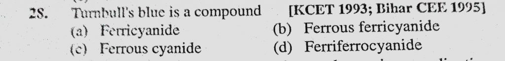 Turnbull’s blue is a compound (a) Ferricyanide (b) Ferrous ferricyanide (c) Ferrous cyanide (d) Ferriferrocyanide Turnbull's blue is a compound (a) Ferricyanide (b) Ferrous ferricyanide (c) Ferrous cyanide (d) Ferriferrocyanide December 3, 2020 Category: Uncategorised (JEE Advanced Physics by BM Sharma + GMP Solutions) , Facebook Messenger WhatsApp Share this:TwitterFacebook Related
