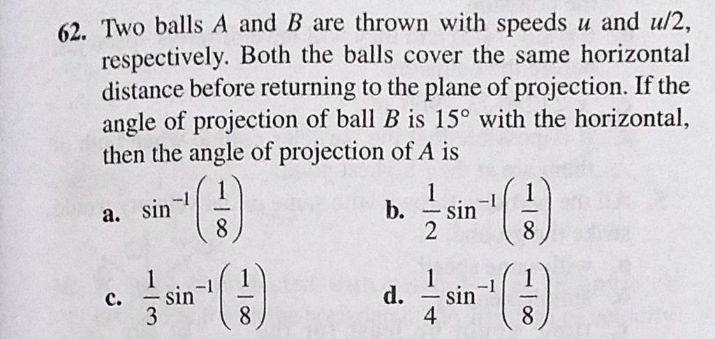 Two balls A and B are thrown with speed u and u/2, respectively. Both the balls cover the same horizontal distance before returning to the plane of projection. If the angle of projection of ball respectively. Both the balls cover the same horizontal distance before returning to the plane of projection. If the angle of projection of ball Two balls A and B are thrown with speed u and u/2 September 24, 2020 Category: Uncategorised (JEE Advanced Physics by BM Sharma + GMP Solutions) , Facebook Messenger WhatsApp Share this:TwitterFacebook Related