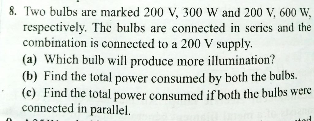 Two bulbs are marked 200 V , 300 W and 200 V , 600 W, respectivelly . The bulbs are connected in series and the combination is connected to a 200 V supply. 300 W and 200 V 600 W respectivelly . The bulbs are connected in series and the combination is connected to a 200 V supply. Two bulbs are marked 200 V November 15, 2020 Category: Uncategorised (JEE Advanced Physics by BM Sharma + GMP Solutions) , Facebook Messenger WhatsApp Share this:TwitterFacebook Related