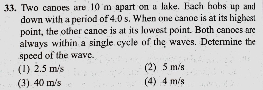 Two canoes are 10 m apart on a lake. Each bobs up and down with a period of 4.0 s. When one canoe is at its highest point, the other canoe is at its lowest point. Both canoes are the other canoe is at its lowest point. Both canoes are Two canoes are 10 m apart on a lake. Each bobs up and down with a period of 4.0 s. When one canoe is at its highest point November 1, 2020 Category: Uncategorised (JEE Advanced Physics by BM Sharma + GMP Solutions) , Facebook Messenger WhatsApp Share this:TwitterFacebook Related