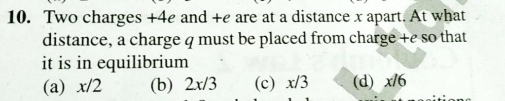 Two charges +4e and +e are at a distance x apart. At what distannce, a charge q must be placed from charge +e so that it is in equilibrium a charge q must be placed from charge +e so that it is in equilibrium Two charges +4e and +e are at a distance x apart. At what distannce September 15, 2020 Category: Uncategorised (JEE Advanced Physics by BM Sharma + GMP Solutions) , Facebook Messenger WhatsApp Share this:TwitterFacebook Related