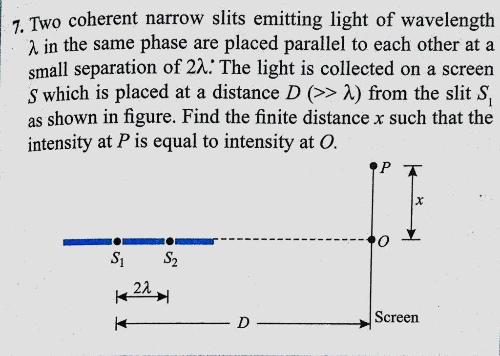 Two coherent narrow slits emitting light of wavelength lemda in the same phase are placed parallel to each other at a small separation of 2 lemda. The light is collected on a screen Two coherent narrow slits emitting light of wavelength lemda in the same phase are placed parallel to each other at a small separation of 2 lemda. The light is collected on a screen October 9, 2020 Category: Uncategorised (JEE Advanced Physics by BM Sharma + GMP Solutions) , Facebook Messenger WhatsApp Share this:TwitterFacebook Related