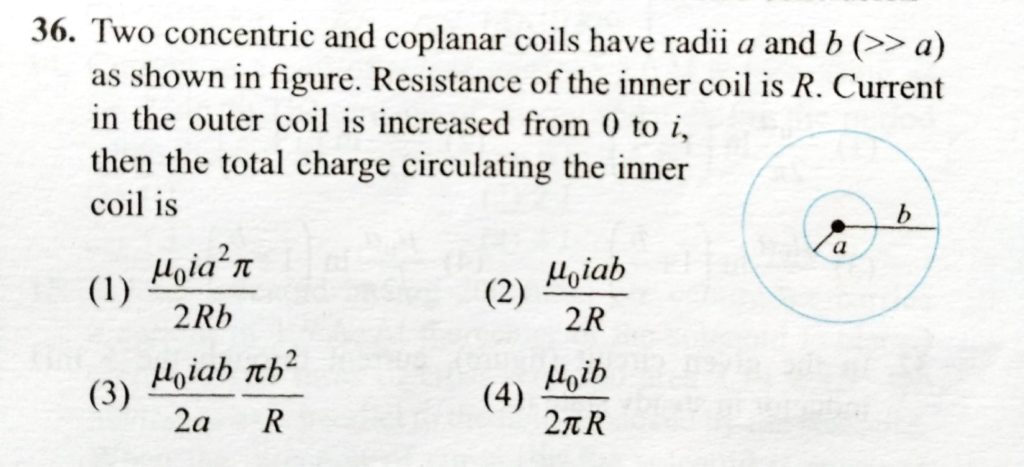 Two concentric and coplanar coils have redii a and b(>>a) as shows in Fig. Resistance of the inner coil is R. Current in the outer coil in increased from 0 to i, then the total charge circulating the inner coil is then the total charge circulating the inner coil is Two concentric and coplanar coils have redii a and b(>>a) as shows in Fig. Resistance of the inner coil is R. Current in the outer coil in increased from 0 to i October 22, 2020 Category: Uncategorised (JEE Advanced Physics by BM Sharma + GMP Solutions) , Facebook Messenger WhatsApp Share this:TwitterFacebook Related