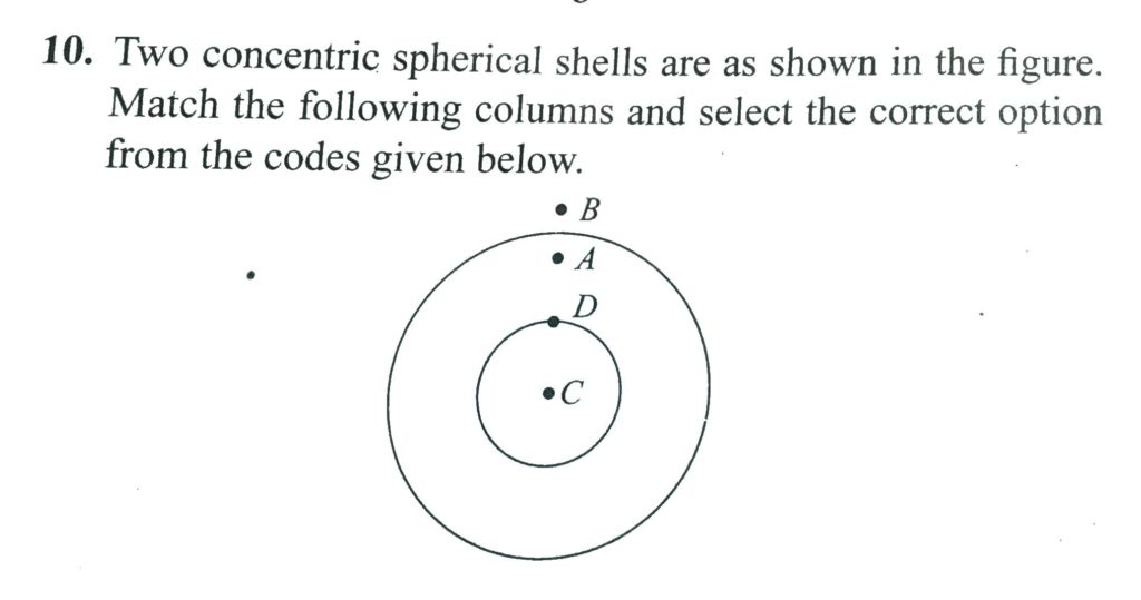 Two concentric spherical sheels are shown in the fig. Match the following columns and select the correct options frm the code given below. Two concentric spherical sheels are shown in the fig. Match the following columns and select the correct options frm the code given below. October 5, 2020 Category: Uncategorised (JEE Advanced Physics by BM Sharma + GMP Solutions) , Facebook Messenger WhatsApp Share this:TwitterFacebook Related