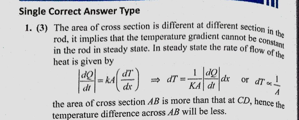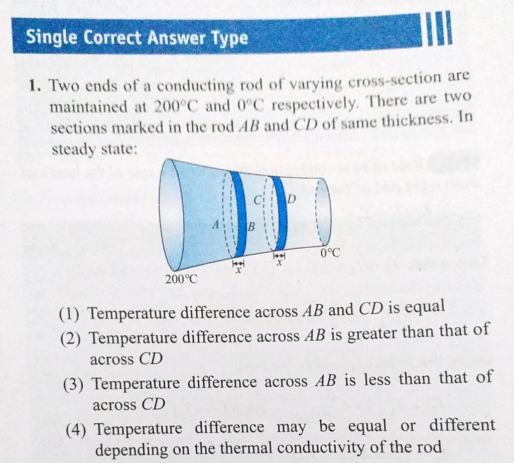 Two ends of a conducting rod of varying cross-section are maintained at 200 C and 0 c respectively. There are two sections marked in the rod AB and CD of same thickness. In steady state : Two ends of a conducting rod of varying cross-section are maintained at 200 C and 0 c respectively. There are two sections marked in the rod AB and CD of same thickness. In steady state : October 25, 2020 Category: Uncategorised (JEE Advanced Physics by BM Sharma + GMP Solutions) , Facebook Messenger WhatsApp Share this:TwitterFacebook Related