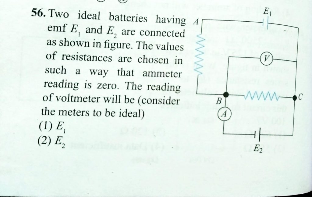 Two ideal batteries having emf E1 and E2 are connected as shown in figure. The values of resistances are chosen in such a way that ammeter reading is zero. The reading of voltmeter will be Two ideal batteries having emf E1 and E2 are connected as shown in figure. The values of resistances are chosen in such a way that ammeter reading is zero. The reading of voltmeter will be November 15, 2020 Category: Uncategorised (JEE Advanced Physics by BM Sharma + GMP Solutions) , Facebook Messenger WhatsApp Share this:TwitterFacebook Related