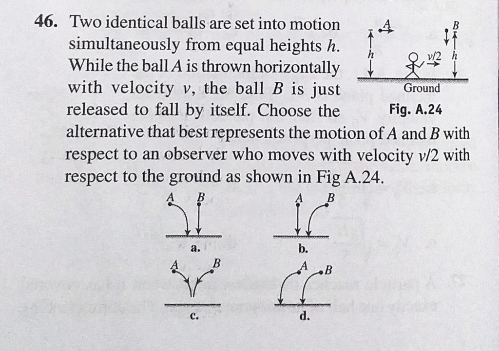 Two identical balls are set into motion simultaneously from equal heights h. While the ball A is thrown horizontally with velocity v, the ball B is just released to fall by itself. Choose the alternative that best the ball B is just released to fall by itself. Choose the alternative that best Two identical balls are set into motion simultaneously from equal heights h. While the ball A is thrown horizontally with velocity v September 24, 2020 Category: Uncategorised (JEE Advanced Physics by BM Sharma + GMP Solutions) , Facebook Messenger WhatsApp Share this:TwitterFacebook Related