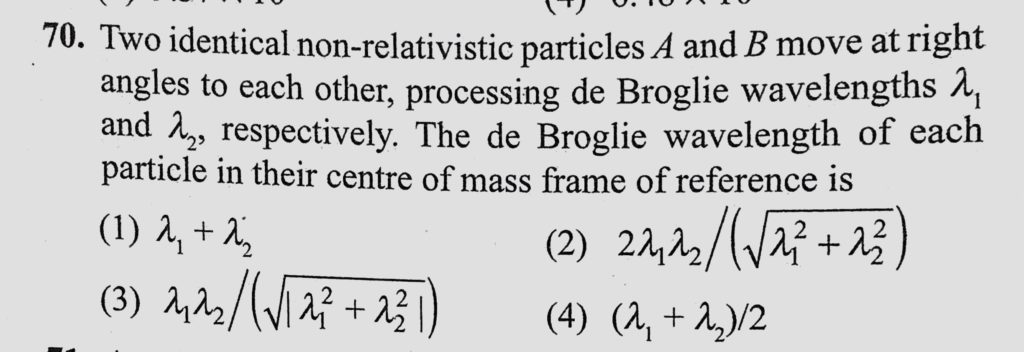 Two identical non-relativistic particles A and B move at right angles to each other, processing de Broglie wavelength lemda 1 and lemda 2, respectively. The de Broglie wavelength of each processing de Broglie wavelength lemda 1 and lemda 2 respectively. The de Broglie wavelength of each Two identical non-relativistic particles A and B move at right angles to each other October 14, 2020 Category: Uncategorised (JEE Advanced Physics by BM Sharma + GMP Solutions) , Facebook Messenger WhatsApp Share this:TwitterFacebook Related