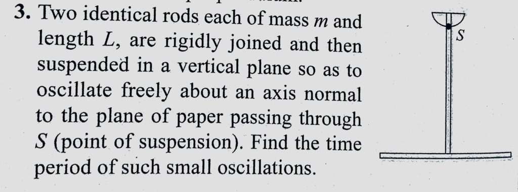 Two identical rods each of mass m and length L, are rigidly joined and then suspended in a vertical plane so as to oscillate freely about an axis normal to the plane of paper passing are rigidly joined and then suspended in a vertical plane so as to oscillate freely about an axis normal to the plane of paper passing Two identical rods each of mass m and length L October 30, 2020 Category: Uncategorised (JEE Advanced Physics by BM Sharma + GMP Solutions) , Facebook Messenger WhatsApp Share this:TwitterFacebook Related