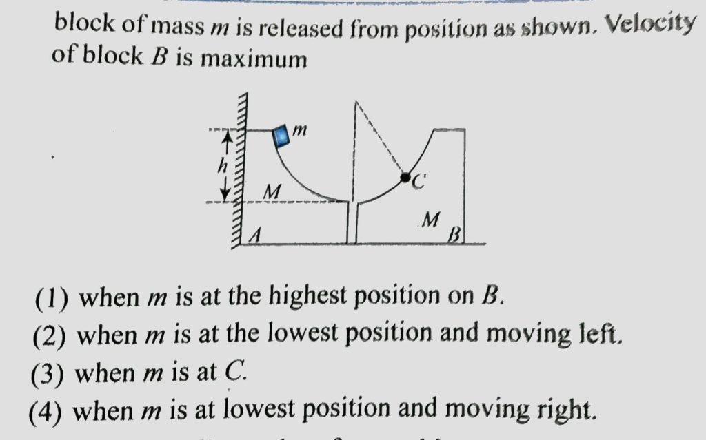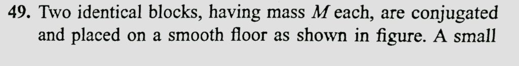 Two identicals blocks having mass M each are conjugated and placed on a smooth floor as shown in figure. A small block of mass m is released from position as shown. Velocity of block B is maximum Two identicals blocks having mass M each are conjugated and placed on a smooth floor as shown in figure. A small block of mass m is released from position as shown. Velocity of block B is maximum September 21, 2020 Category: Uncategorised (JEE Advanced Physics by BM Sharma + GMP Solutions) , Facebook Messenger WhatsApp Share this:TwitterFacebook Related