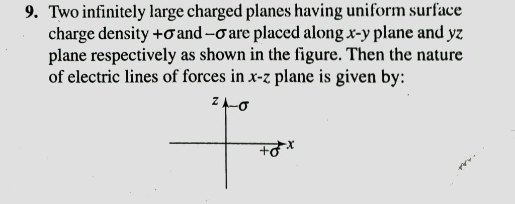 Two infinitely large charged pllanes having uniform surface charge density +sigma and -sigma are placed along x-y plane is given by Two infinitely large charged pllanes having uniform surface charge density +sigma and -sigma are placed along x-y plane is given by September 18, 2020 Category: Uncategorised (JEE Advanced Physics by BM Sharma + GMP Solutions) , Facebook Messenger WhatsApp Share this:TwitterFacebook Related