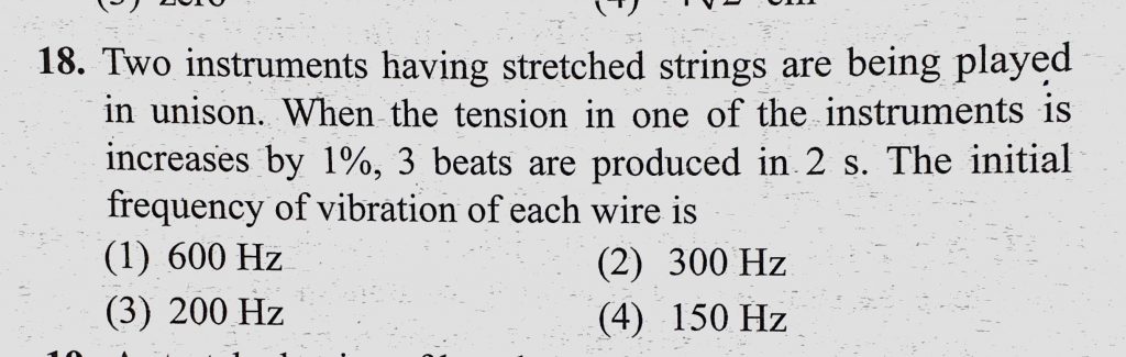 Two instruments having stretched strings are being played in unison. When the tension in one of the instruments is increases by 1% 3 beats are produced in 2 s. The initial frequency Two instruments having stretched strings are being played in unison. When the tension in one of the instruments is increases by 1% 3 beats are produced in 2 s. The initial frequency November 6, 2020 Category: Uncategorised (JEE Advanced Physics by BM Sharma + GMP Solutions) , Facebook Messenger WhatsApp Share this:TwitterFacebook Related