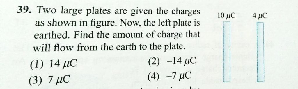 Two large plates are given the charges as shown in figure. Now the left plate is earthed. Find the amount of charge that will flow from the earth to the plate. Two large plates are given the charges as shown in figure. Now the left plate is earthed. Find the amount of charge that will flow from the earth to the plate. October 31, 2020 Category: Uncategorised (JEE Advanced Physics by BM Sharma + GMP Solutions) , Facebook Messenger WhatsApp Share this:TwitterFacebook Related