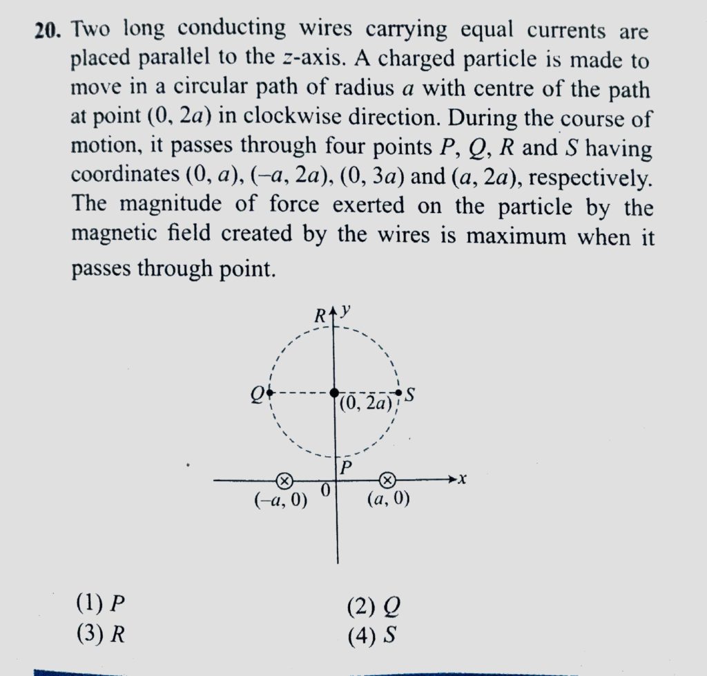 Two long conducting wires carrying equal currents are placed to the z axis . A charged particle is made to move in a ciircular path of radius a with centre of the path at point ( 0, a ) in clockwise direction. a ) in clockwise direction. Two long conducting wires carrying equal currents are placed to the z axis . A charged particle is made to move in a ciircular path of radius a with centre of the path at point ( 0 October 17, 2020 Category: Uncategorised (JEE Advanced Physics by BM Sharma + GMP Solutions) , Facebook Messenger WhatsApp Share this:TwitterFacebook Related